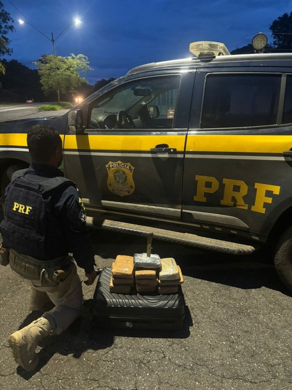Durante a verificação das bagagens, a equipe da PRF localizou 10 tabletes de Skunk (forma mais pura da Maconha), no interior de uma mala despachada pela citada passageira.