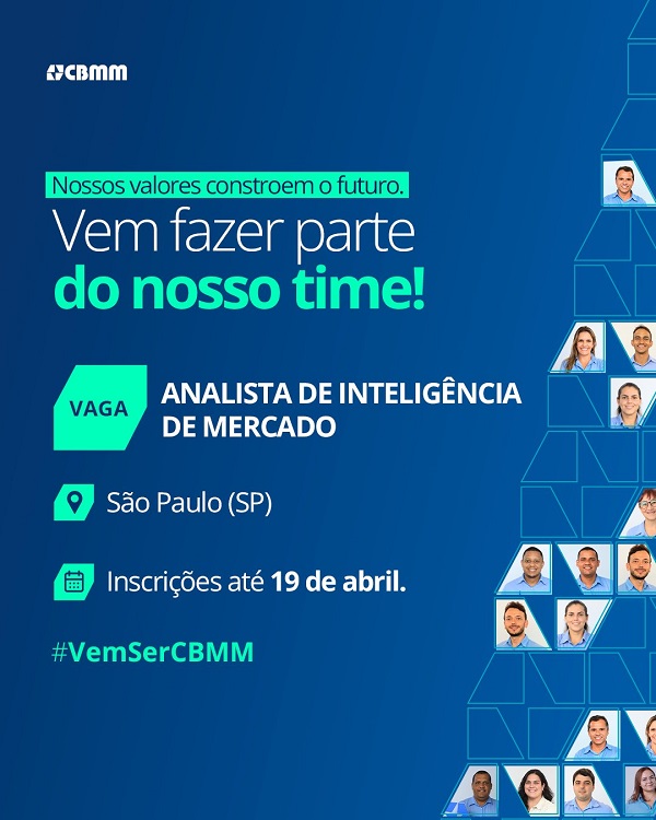 Em São Paulo, a CBMM busca um(a) Analista de Inteligência de Mercado. Esta função será crucial para a análise de dados e tendências de mercado, contribuindo para a tomada de decisões estratégicas da empresa.