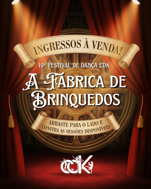 Acabou a espera… Os ingressos para o aguardado 19º Festival de Danças CDK, com o tema mágico ‘A Fábrica de Brinquedos’, já estão à venda!