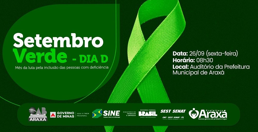 A ação acontece nesta sexta-feira (26), às 8h30, no auditório da Prefeitura de Araxá, e é aberta ao público. A iniciativa faz parte da programação do Setembro Verde, mês voltado à conscientização sobre os direitos das pessoas com deficiência.