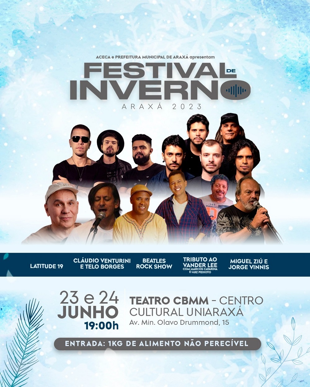 Promover a interação cultural por meio da tradição dos festivais de musicais. Araxá recebe o Festival de Inverno nesta sexta (23) e sábado (24), no Centro Cultural Uniaraxá. O evento conta com a parceria da Prefeitura de Araxá e a entrada é um 1 kg de alimento não perecível.
