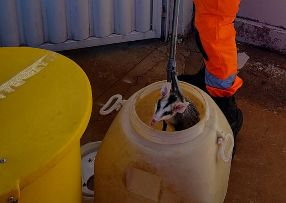 Na manhã desta quinta-feira, dia 23 de maio, o Corpo de Bombeiros de Araxá foi solicitado via 193 atendimento de uma ocorrência na Avenida Prefeito Aracely de Paula, 3115, Bairro Santa Terezinha, em Araxá, para capturar um gambá.
