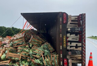 Plantão Policial Serra do Salitre – Carreta com placas do Paraguai tomba na BR-146 e interdita parcialmente a pista. Confira…