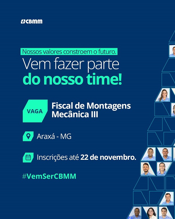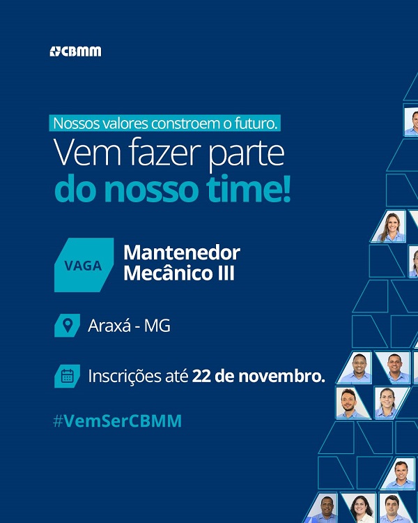 A CBMM está com inscrições abertas para diversas oportunidades de emprego em sua planta industrial localizada em Araxá. Os interessados em integrar a equipe da empresa têm até o dia 22 de novembro para se candidatar às vagas.
