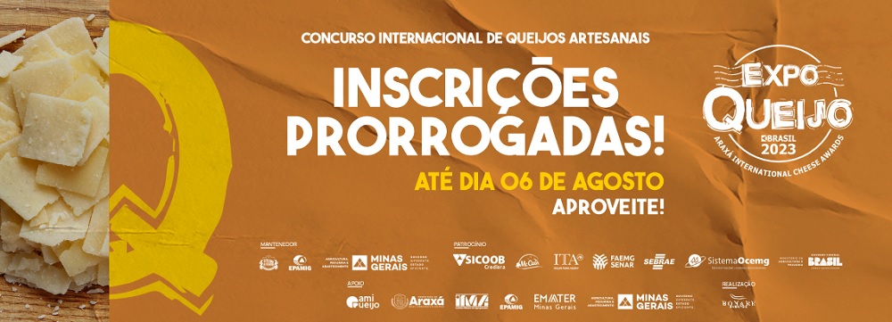 As inscrições para o concurso internacional da ExpoQueijo Brasil 2023 – Araxá International Cheese Awards foram prorrogadas até o próximo dia 6. A ficha de inscrição, que está disponível no site www.expoqueijobrasil.com.br .