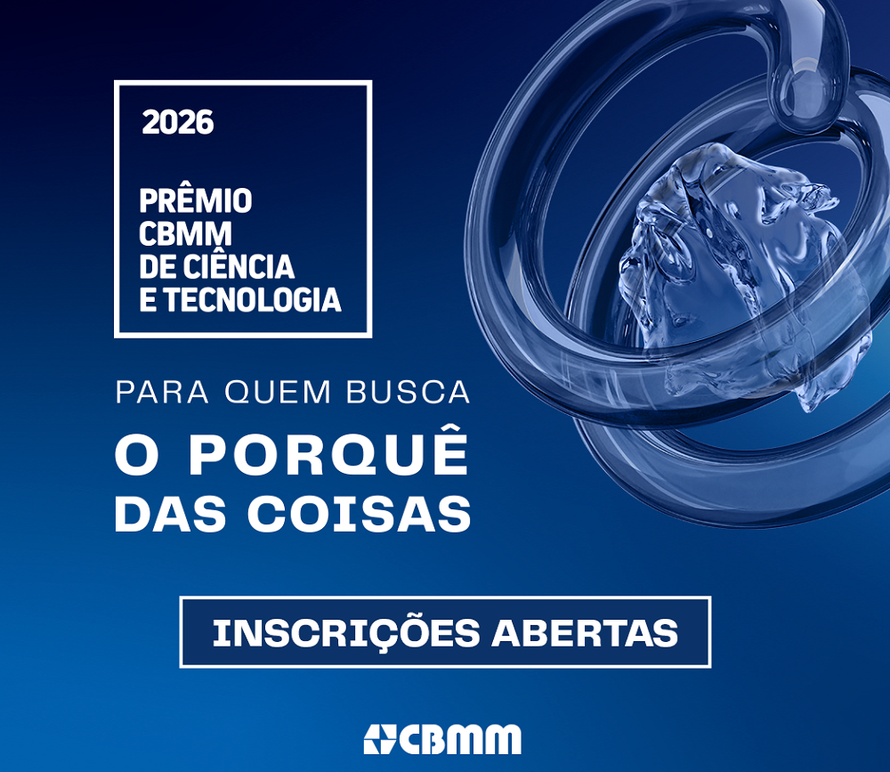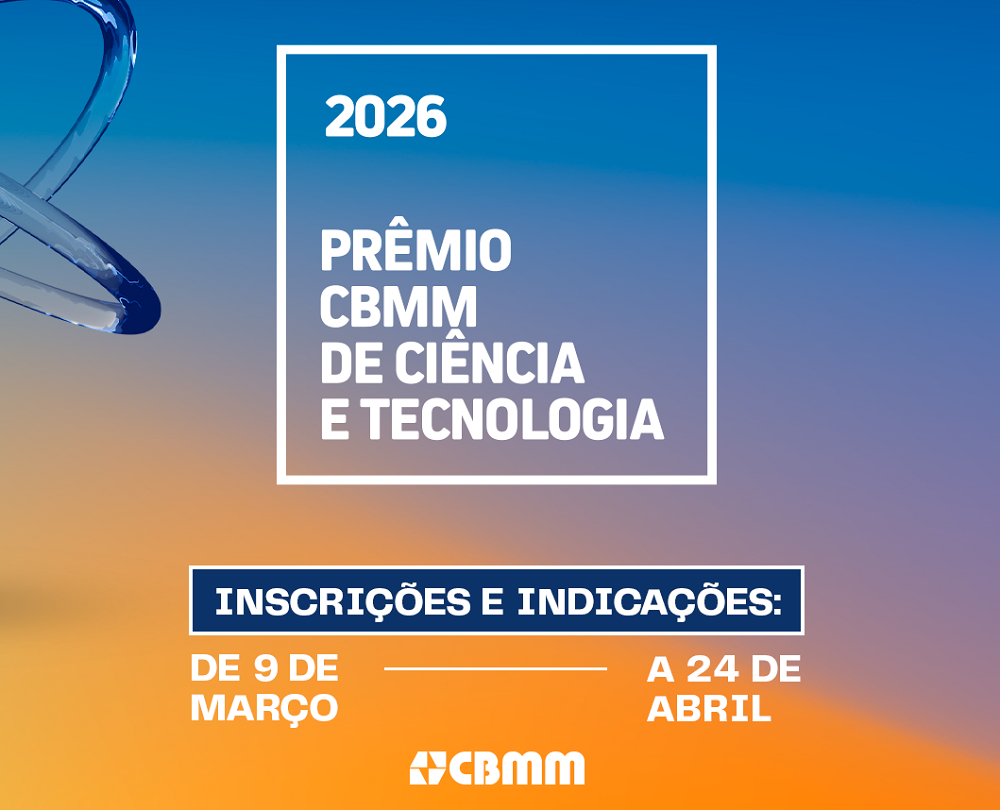 A CBMM, empresa brasileira e líder mundial na produção e comercialização de produtos de Nióbio, anuncia a abertura das inscrições para o Prêmio CBMM de Ciência e Tecnologia 2026, que vão de 09 de março a 24 de abril. Com o tema “Para quem busca o porquê das coisas”, a premiação chega em sua oitava edição este ano, visando à valorização de profissionais que contribuem com a produção científica e tecnológica brasileira e seu impacto na sociedade.