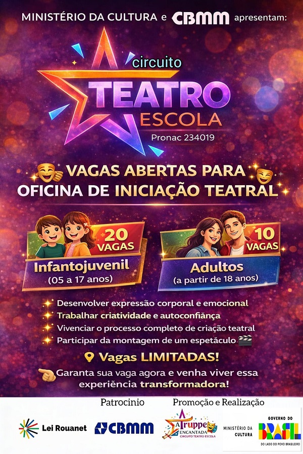 A iniciativa reforça o compromisso com a formação cultural e o fortalecimento das artes cênicas na região, criando oportunidades para novos talentos e promovendo inclusão por meio da arte.