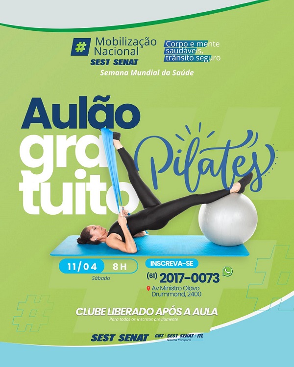A prática de Pilates oferece uma abordagem completa para o corpo e a mente, e Araxá terá a oportunidade de vivenciar seus benefícios em um aulão gratuito no dia 11 de abril, às 8h, na unidade SEST SENAT Araxá. O evento é aberto a todos os públicos e ideal para quem busca melhorar a postura, aliviar dores e alcançar uma maior sensação de bem-estar.