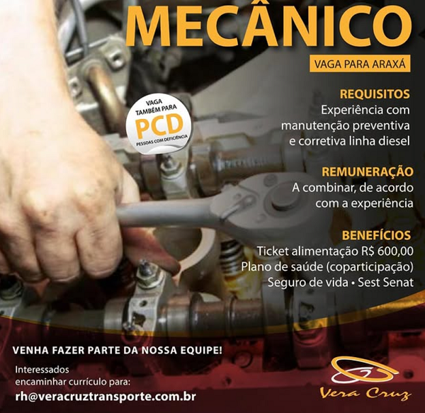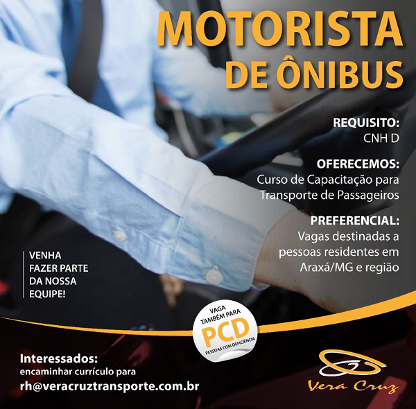 A empresa Vera Cruz, referência em transporte na região, está com vagas abertas em Araxá para os seguintes cargos: