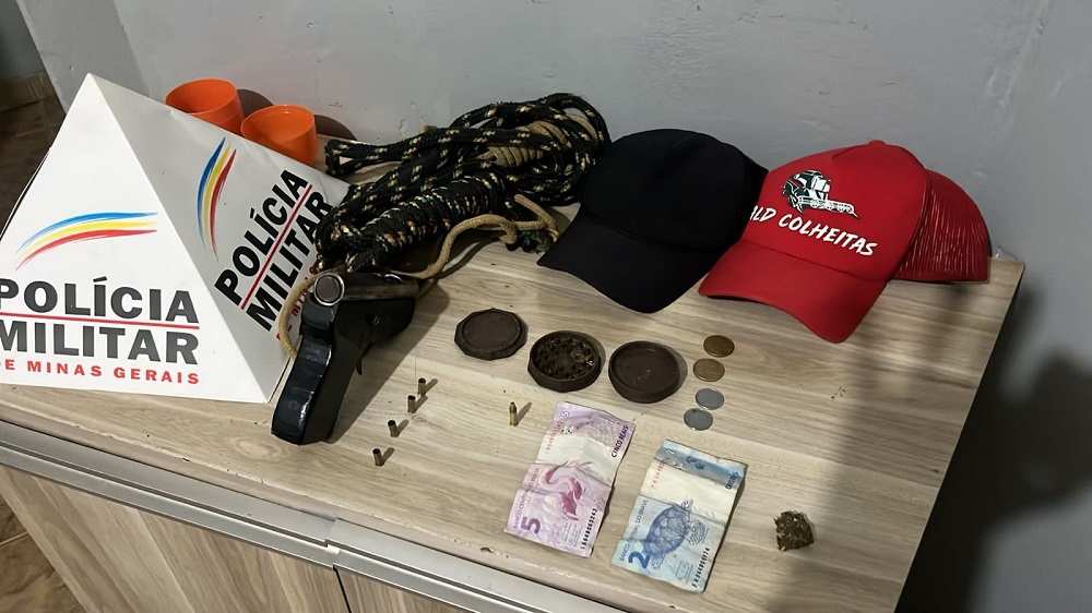 A guarnição policial em rastreamento e diligências, obteve a informação de que os indivíduos evadiram em um veículo GM/Chevette, o qual foi localizado em uma oficina onde relatos, o veículo foi deixado por um mototaxista, sendo o veículo removido pelo pátio credenciado ao Detran. As equipes policiais em diligências localizaram os indivíduos e após buscas foram localizadas 01 pistola calibre .22, 01 munição calibre .22 intacta, 04 cartuchos vazios de calibre .22, 01 bucha de maconha, 01 dichavador, 01 corda, 02 aparelhos celulares e uma certa quantia em dinheiro.