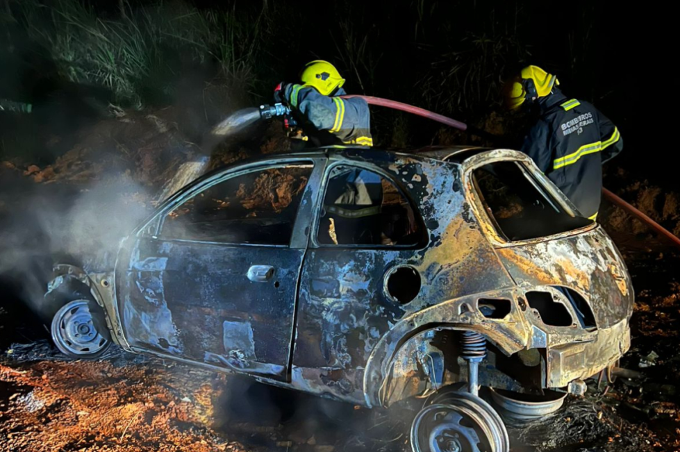 De acordo com os bombeiros, não foi possível identificar oficialmente o veículo, já que ele estava sem placas e sem documentação no local.