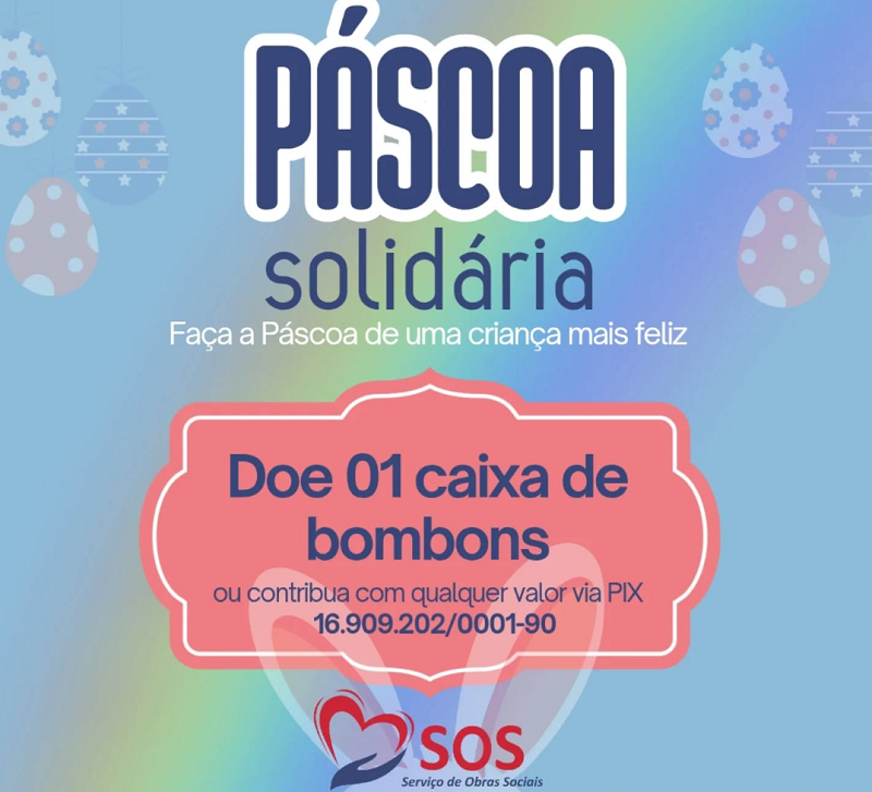 A entrega dos bombons será feita em uma festinha especial, planejada com muito carinho pela equipe do SOS. As doações podem ser feitas até o dia 26 de março, e cada caixa arrecadada representa uma oportunidade de levar amor e alegria nesta Páscoa.