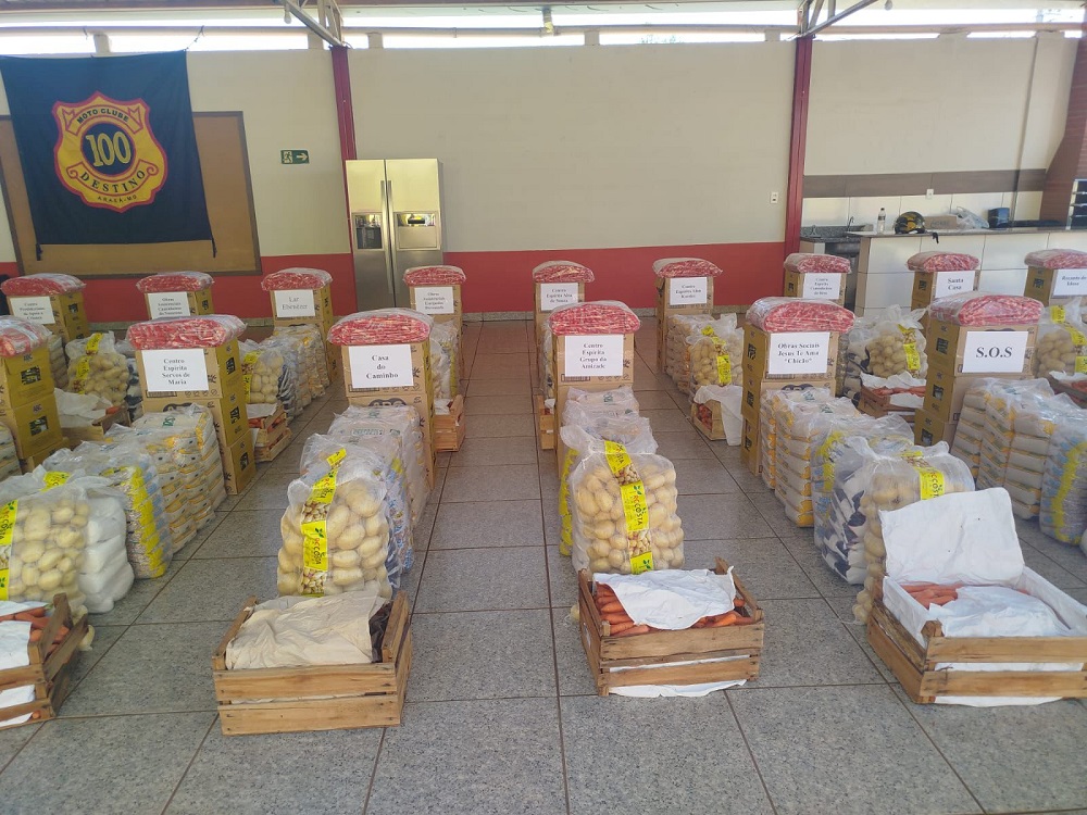 O Moto Clube 100 Destino realizou, neste sábado (6), a entrega de 6 toneladas de alimentos arrecadados a partir do valor dos ingressos do 22º 100 Destino MotoFest Araxá. O evento, que aconteceu entre os dias 29 e 31 de agosto de 2025, contou com a parceria financeira da Prefeitura de Araxá, por meio da Secretaria Municipal de Turismo.