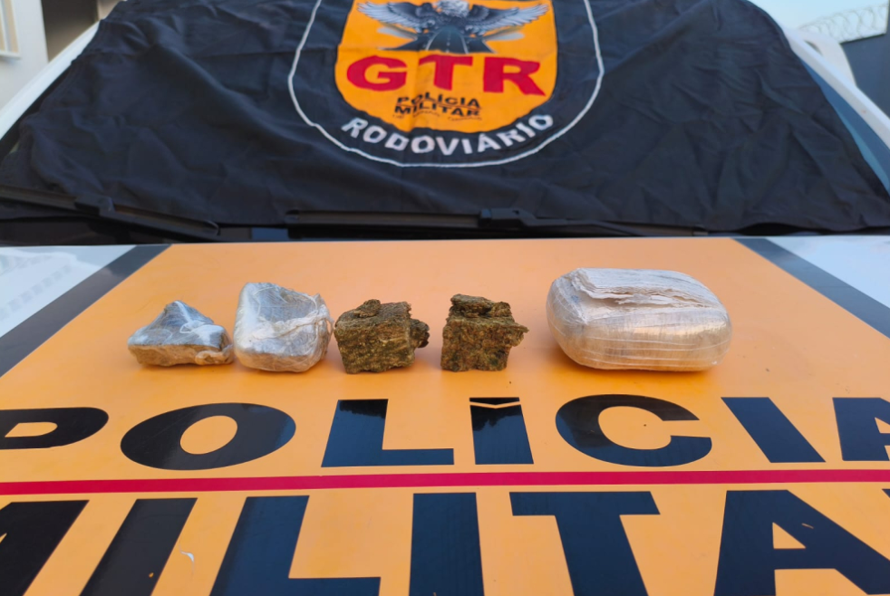 Diante da suspeita, a equipe realizou buscas na bagagem do homem. Em uma mochila, entre roupas e sacolas plásticas, foram encontrados quatro tabletes de maconha e um tablete de cocaína.