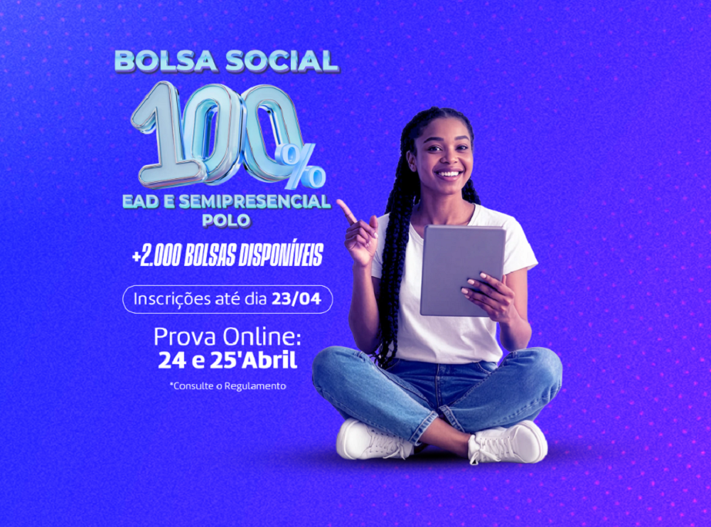 Para se inscrever no Bolsa Social 100% e concorrer a uma bolsa com desconto integral na mensalidade, o candidato não deve ter diploma de ensino superior, ou seja, essa deve ser a primeira graduação. Além disso, a renda familiar não pode ultrapassar um salário mínimo e meio por pessoa.