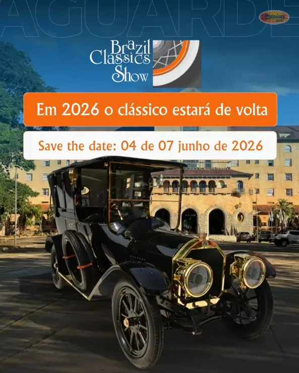 Araxá se transformará na capital nacional do antigomobilismo, com mais uma edição do aguardado Brazil Classics Show 2026, considerado internacionalmente como o melhor e mais charmoso encontro de carros antigos do país. No site oficial do Brasil Classics Show https://brazilclassics.com.br/ foi confirmada a data oficial do evento que será de 4 a 7 de junho. O local do evento e a programação oficial ainda não foram divulgadas.